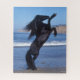 Black Friesian Stallion Rearing On Beach Jigsaw Puzzle