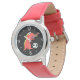 Black funny soccer watch with a colourful illustration of a funny dinosaur with a fire breath playing soccer. This funny kids watch would make a great gift for children who love playing soccer.