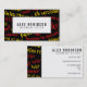 A modern design featuring beginner German phrases in yellow and red on a black background to match the colors of the German flag. In the middle, there is a white box with a black outline for your name and profession, or a business name and tagline. This would be perfect for a french language teacher or a private tutor. On the back, the design is repeated with more space for your details.