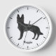 Black German Shepherd Cartoon Dog With Custom Text Clock