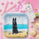 Black German Shepherd dog sitting on beach is a perfect gift idea for someone who love this dog breed.
