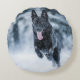 Black German Shepherd in snow Duvet Cover Round Pillow