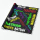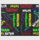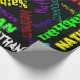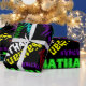 Black Gift Wrap with popping electric neon colour Name Collage in Lime Green, Aqua Blue, Yellow, Grey, Purple, and Vivid Blue. Make someone feel very special with personalized wrapping paper with any names you choose. Just type their name. Click customize, edit to change background colour. Simple name template or add photos to customize yourself. Custom Birthday, Congratulations or Any Day, Cool, Modern, Cheery, Happy, fun and festive. Cool Modern Teen Christmas Ideas.