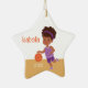 Personalize this cute basketball ornament for the sport-loving girl in your life! This ornament features a Black girl dribbling a basketball on a basketball court. Also available in other colours for extra customization.