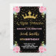 Black Glitter Crown Princess Birthday Invitations