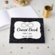 Elegant diamond look alike infinity design with black faux glitter decorate this guestbook. Wedding guest books are fun for both the couple and their celebrants. Invite attendees to leave you well-wishes at your reception, and you're guaranteed to have a keepsake to look back on for years to come. Plus, your guests will get to leave their mark on your event, not to mention put in writing whatever they didn't have a chance to express in person on the big day. Personalize the book by changing the text in the fields provided. You can change font style, size, and colour.