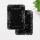 A display card for your handmade earring or jewellery. A classic black background, white text.Decorated with faux silver glitter dust. Personalize and add your name and contact information on the front.