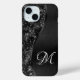 Easily personalize this black brushed metal and glamourous faux sequin glitter patterned phone case with your own custom monogram.