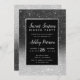 A modern, pretty chic and elegant faux silver and black glitter shower ombre with black colour block Sweet sixteen party invitation with black glitter ombre pattern fading onto a black background with and elegant gold frame Perfect for a sweet sixteen birthday party.