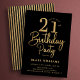 Gold and black 21st birthday party invitation. Trendy modern design, perfect for a stylish men's or women's bday celebration. Features script font and stylish stripes o the back. Customize with your own details. Printed Zazzle invitations or instant download digital printable template.