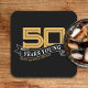 Black & Gold 50 Years Young Banner 50th Birthday Square Paper Coaster