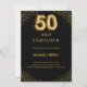 A classic black background, decorated with golden corners. Personalize and add a name and party details. 50 with a balloon style font.