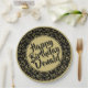 This over-the-hill design has a black and gold random number pattern with a gold milestone number 85 repeated in varied sizes and angles over a black background. There is a gold circle in the centre for your text and black and gold rings around the rim.
