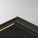 Black gold frame with a black abstract filigree graphic design on many matching decor products for a modern upmarket vacation Villa with a matching Guest book.