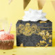 A luxury posh black and gold wrapping paper featuring gilded acanthus leaves in a lively gold floral display with gold chains and crests over a black acanthus leaf damask background.