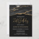 This elegant 21st birthday invitation features a watercolor image of an agate geode in black with faux gold highlights. The words "21st Birthday" appear in faux gold glitter in decorative modern handwriting font. Customize it with the name of the guest of honour in gold coloured text and the details in white. A matching black and gold agate design appears on the reverse side.