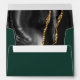 The inside of this elegant modern wedding invitation envelope features a black watercolor agate design trimmed with faux gold glitter. Customize the back flap with the names of the bride and groom in gold-coloured handwriting script and return address in copperplate font on an emerald green background.