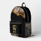 Black & Gold Agate Geode Glitter Monogram Printed Backpack