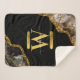 Black & Gold Agate Geode Glitter Monogram Sherpa Blanket