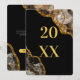 A beautiful black and gold geode agate crystal gemstone design with gold glitter accents. This elegant marble effect design combining black tones and gold creates a sophisticated amethyst piece of abstract art. An ideal new years holiday card. Customize the year and text and make it your own.