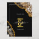 A beautiful black and gold geode agate crystal gemstone design with gold glitter accents. This elegant marble effect design combining black tones and gold creates a sophisticated amethyst piece of abstract art. An ideal wedding thank you card.