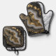 Black Gold Agate Geode Luxury Marble Oven Mitt & Pot Holder Set