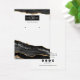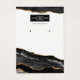 Personalized earring display cards featuring a crisp white background with trendy black & gold agate edges, your business logo, social media icons that can be removed, and your company details.