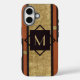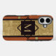 A bold, black and gold geometric design on a rich tan leather background, coupled with a minimal monogram initial, combine to create a sophisticated and unique personalized iPhone case. These vintage vibes are sure to please, and this phone case will make the perfect gift for Father's Day, birthdays, graduation, groomsmen, or a wedding anniversary.