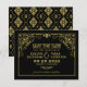 Rich black and gold combine in this bold art deco save the date, featuring an intricate gold scrollwork frame and matching gold damask tile reverse for a truly opulent, Great Gatsby-inspired aesthetic. The structured serif and script typography reinforces the formal, glamourous mood. Personalize with your names, wedding date, and venue details.