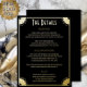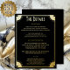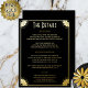 The front of this simple, elegant art deco floral wedding details enclosure card features customizable text in chic, popular vintage script and sans serif typography in real gold foil on a black background, surrounded by a minimal border with with retro flowers in the corners, combining sophisticated glamour with minimalism. This enclosure card is the size of a standard postcard to fit inside the envelope with your invitation. The back features a plain black background. You can customize the text by editing the product template to personalize this card for your own wedding.