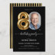 Black Gold Balloon 80th Birthday Invitation. Celebrate in style with this modern and elegant milestone birthday invitation featuring bold black and gold accents and a chic foil balloon illustration. Perfect for marking a major life moment, the design combines sophistication with a festive touch. The sleek layout enhances its contemporary appeal, while the luxurious gold details exude timeless elegance. Ideal for milestone birthdays, this invitation sets the tone for an unforgettable celebration, blending modern aesthetics with classic glamour.