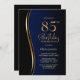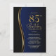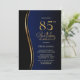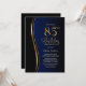 Invite your friends and loved ones with this modern black, gold and blue 85th birthday party invitation. The customizable text area in this invitation template allows you to effortlessly include all the necessary details for your special birthday celebration, including the date, time, venue, and RSVP information. A variety of paper types and corner styles are available for your unique invitations, along with the option to download if you prefer a digital format.