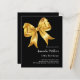 A classic black background, decorated with a large golden bow. Personalize and add a name and party details.