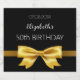 Elegant, classic, glamourous birthday label. Faux gold coloured bow. Black background. Personalize and add the date, name and age/event.