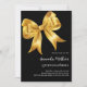 A classic black background, decorated with a large golden bow. Personalize and add a name and party details.