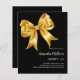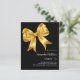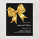 A classic black background, decorated with a large golden bow. Personalize and add a name and party details.