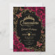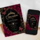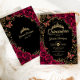 Black, gold and burgundy Quinceanera celebration invitation. Features, script font, gold butterflies, watercolor roses and tiara. Perfect for an elegant princess style glam celebration. Personalize with your own details. Printed Zazzle invitations or instant download digital printable template.