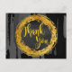 A beautiful gold letter saying thank you on black circle post card is very elegant and classic to thanks your guests.