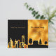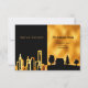 An elegant and minimalist moving annoucement card from a city life to a rural country life. Black and faux gold with a city skyline and a country home. Personalize and add your new address to your family and friends.