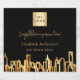 A black background, with a faux gold city skyline as decor. Personalize and add your business logo and a text on front. Golden letters