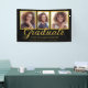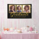 Black and gold graduation Class of 2024 photo banner with an elegant script font overlay and a 3-photo collage. Contact me for assistance with your customizations or to request additional matching or coordinating Zazzle products for your event(s).