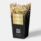A black background decorated with faux gold confetti. Personalize and add your business logo and a QR code to your website or a social media account.