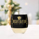 Black and gold congratulations wine glass for a graduation party. Design features a triple square border, graduation cap, and customizable graduation year text. Personalize it with your class of year and name. Fitting for any type of graduation: high school, college / university, nursing, etc.