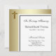 Elegant black and gold cross In Loving Memory man or womans funeral and memorial service announcements and inserts. You can make the cross smaller or larger, move it to a different location, or delete it. Choose the orange "Customize it!" button to begin adding your event details, font style, font size & colour, and wording. Please note - all of the invitation designs you will find on Zazzle are printed graphics with no raised, or added parts or pieces.