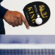 A stylish black and gold "Ping Pong King" paddle with gold crown and personalized name. A great design for anyone who is a ping ping enthusiast and loves to play ping pong. A luxury personalized name table tennis ping pong paddle.