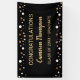 Introducing our Black Gold Custom Congratulations Graduation Banner, the perfect addition to celebrate the monumental achievement of graduation. This elegant welcome sign is designed to add a touch of sophistication and personalized flair to your graduation party. Featuring a sleek black background adorned with gold and white confetti dots, it sets the stage for a celebration that's as memorable as the graduate's accomplishments.