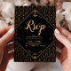 Cartons Réponse Mariage Art Déco Géométrique Elégant Or Noir