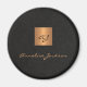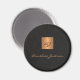 Luxury elegant black leather look magnet with a gold glitter monogrammed square and personalized name signature.