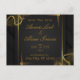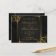 A luxurious wedding invitation blending black and gold, adorned with subtle details of shiny gold, along with delicate and elegant illustrations on the edges. The design features two golden rings in the centre, creating a beautiful balance between simplicity and elegance