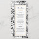 A gorgeous decadent menu card fit for a royal! Etched botanical floral drawings and elegant sans serif fonts give this a vintage, but regal feel. The golden colour border and scroll lifts it all and stands out against the black and white. It is perfect for a couple how what to add a luxurious feel to their big day.
